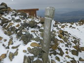 5、福智山山頂 10時38分 901m 山頂碑にタッチしてやっと登頂! 白糸の滝から2時間18分かかっていた。 マイナス3℃