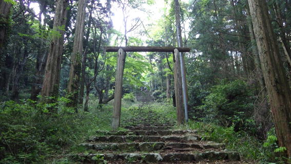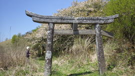 鳥野神社の鳥居をくぐる 7時48分 |