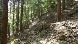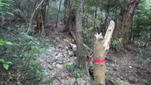 尾根の途中で、先行していた3人の登山者が休憩をしていた。挨拶を交わし私が先行することになった。疲れも知らず、40分程快適な尾根歩きが続く。この尾根は本当に気持ちがいい。知る人ぞ知る絶好の尾根歩きスポットだ。他の登山者も殆どいないので、森を一人占めした気分になって山歩きに浸れる空間でもある。但し、途中一か所だけ難所がある。 |
