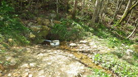 ![]() 桜の根元に水場がある |