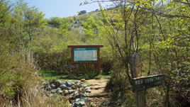 朽ちた説明看板 13時06分 ダムまで60分 |