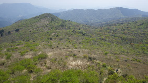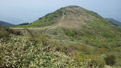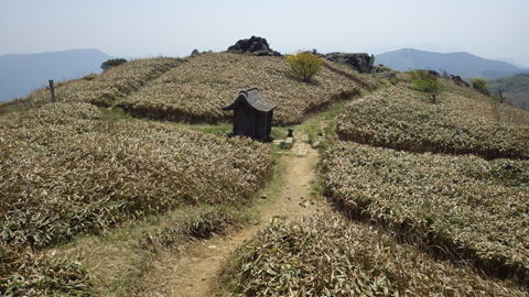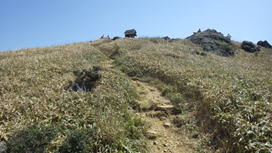 | 山頂を下り四畳半岩へ向かう 10時59分 これから茶色のクマザサが徐々に青くなるだろう |
