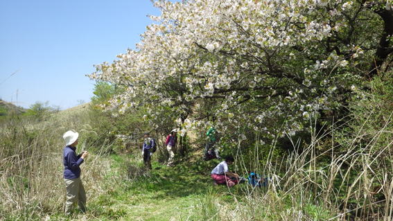| 数人の女性登山者がここで花見をしながら昼食を摂っていた。この桜に名前を付けたらきっと大勢の方が見に来るだろう。 そうだ、「福智桜」ではどうだろう? |