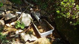 水場から登山道へ水が流れる 10時41分 |