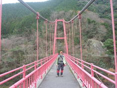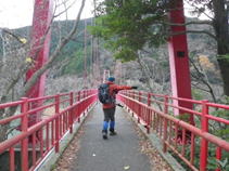 赤い「ますぶちばし」 7時46分 鱒淵ダムのシンボル、赤い橋を渡る。 |