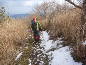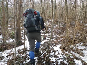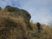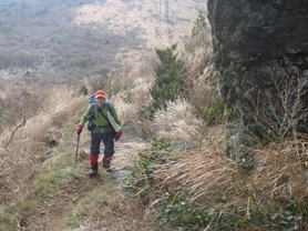 大岩の横を通過 10時05分 山頂までの最後の急登を「ヨイショ、ヨイショ」と上って行く。ゴールはもうすぐそこだ。 雪は消えた |