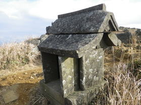 筑前黒田藩・福智社(鳥野神社)の祠 10時18分 お供えのカップの中の水は凍っていた。 |