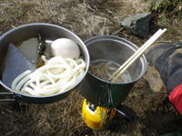 大岩の横にてちょっと早い昼食 10時32分 |