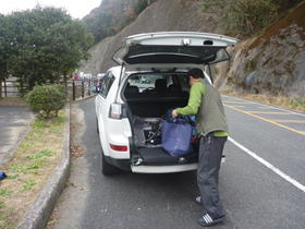 1、鱒淵ダム 7時40分 鱒淵ダム横の路肩に車を停め、準備を整え出発。 車は7台 |