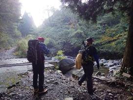 川を渡渉する 8時22分 |