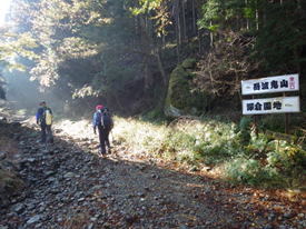 岳滅鬼山登山口を目指して 8時38分 |