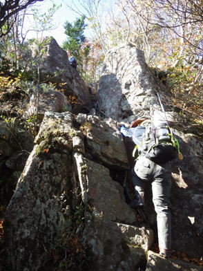息つく暇のない連続した崖。緊張しながらよじ登る。 |