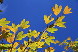 青い空に黄葉が映える