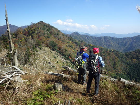 | 紅葉する障子ヶ岳 岳滅鬼岳と岳滅鬼山の鞍部から障子ヶ岳を望む |