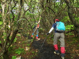 9、ソババッケ 11時15分 ヌルヌルの黒土や濡れた岩ゴロと格闘すること約1時間。 |