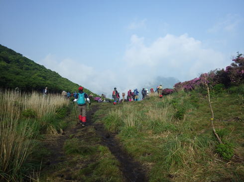 ミヤマキリシマの群落の中を進む 7時20分 幸せな気分