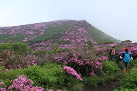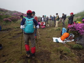 平治岳本峰斜面 ガスの切れ間に見えたミヤマキリシマの群落