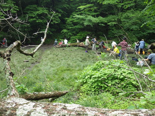 4、ソババッケ 6時00分 登山口から約1時間。森を抜けると広い場所。思わす深呼吸! |