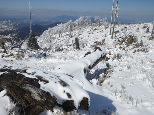 英彦山 中岳山頂広場 大きなブナも樹氷で真っ白 13時37分