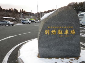 別所駐車場を出発 8時08分 マイナス5℃と冷え込む寒い朝だった。 しゃくなげ荘からの道路もガチガチに凍結してチェーン規制が敷かれている。 駐車場に到着時は5台程度の車だったが、ゆっくり準備をしている内にどんどん車が入って来た。おまけにバスも到着、中からゾロゾロと登山客が降りてくる。皆さん今日のお目当てはやっぱり「四王寺滝」だろう。負けずに準備を急いだ。 |