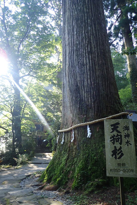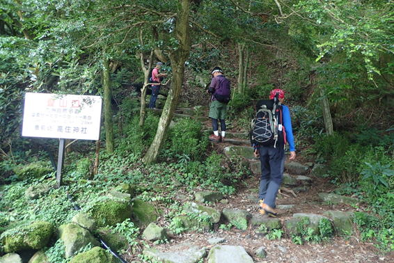 1、高住神社駐車場 7時56分 出発 夏バテ気味の身体に鞭打って早起き!今日はイワタバコ観賞目的で英彦山にやってきた。 駐車場はまだ閑散としているが、バイクツーリングのグループが爆音を轟かせて走り抜けていく。 山は夏本番、これから益々賑わいを増していくことだろう。今日はH師匠、ヤジさん、Y本さんと私の4人での登山である。 |