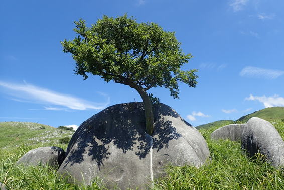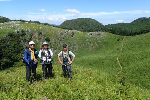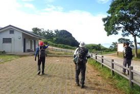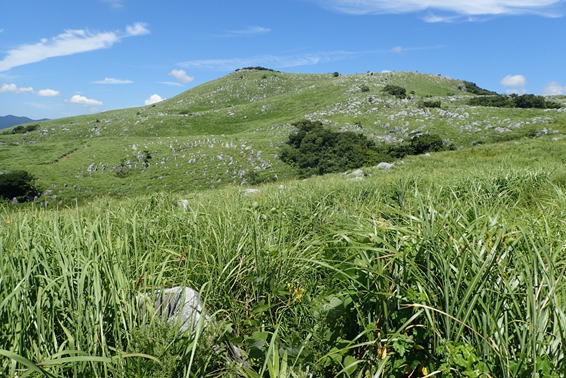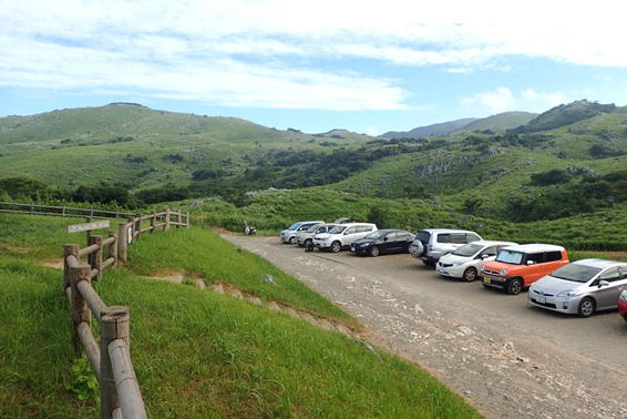 早朝なのに既に車が10台ほど駐車している。日陰のない平尾台の夏は午前中が勝負だ!