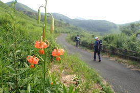 沿道にはノヒメユリ 8時10分 |