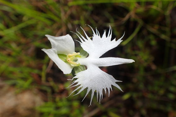 広谷湿原で見つけた「サギソウ」 キラキラ光って美しい