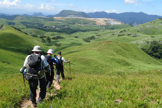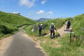 福智山系を眺めながら緑の丘陵地帯を下って行く 10時39分 |