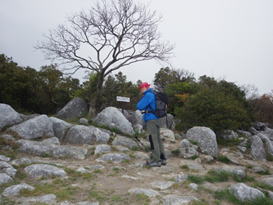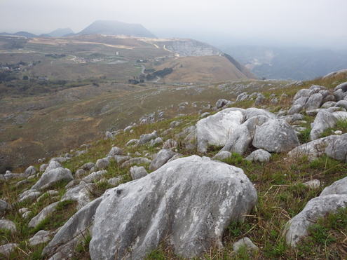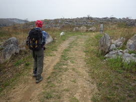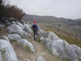 まずは最初の丘陵に挑む。散策路とは言え、それなりに勾配のある上り坂だ。上るにつれ石灰岩がチラホラと現れてくる。