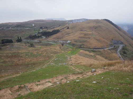 大平山より吹上峠駐車場方面を望む  8時24分  野焼きから35日後の風景