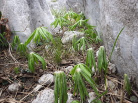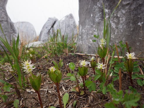 ヒトリシズカの群落  7時49分  石灰岩の陰でひっそりと咲いていた