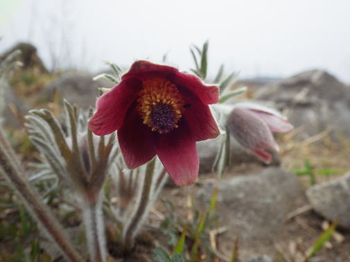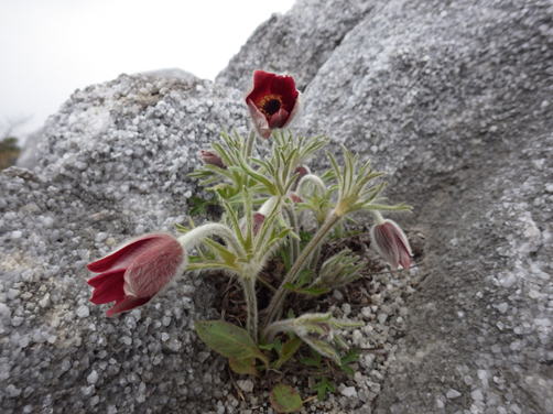 石灰岩の割れ目に咲く 翁草(オキナグサ)
