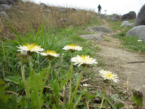シロバナタンポポの咲く散策路  10時51分