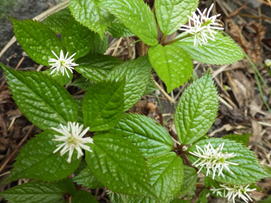 ヤブレガサの名前の由来は、芽が出る若い葉の様子が破れた傘のようになるところから。