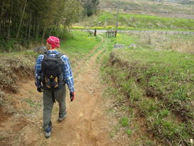 午後からは雨の予報なので不安に駆られながら準備を整えた。「さあ行こう」と駐車場の隅から道路に下り散策路の入口に向かう。