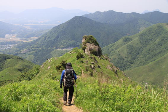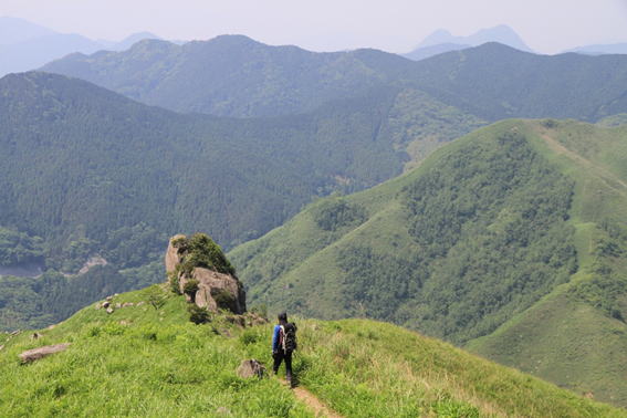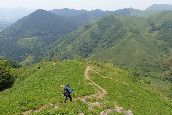 桶ヶ辻の山頂で暫くパラグライダー見学を楽しんで先へと進んだ |