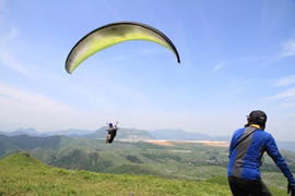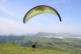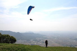 | 桶ヶ辻の稜線上を飛ぶパラグライダー 10時17分 夢とロマン |