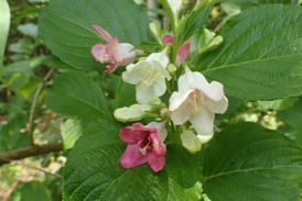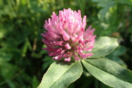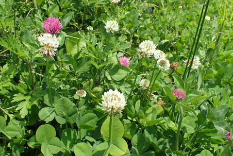 茶ヶ床園地では、ムラサキツメクサとシロツメクサが競って咲いていた。 |