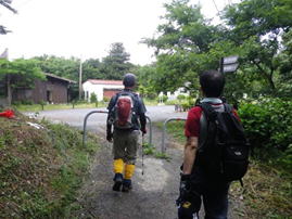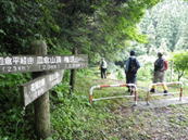 1、尾倉登山口駐車場出発 8時09分 山頂には雲がかかっているが、お天気は回復傾向なので元気よく出発。 さあ行くぞー |