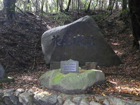 花尾城址記念碑 9時03分 花尾城は1194年に築城されたと言われている。 築城800年を記念して建てられた碑。 石碑前を通過 |