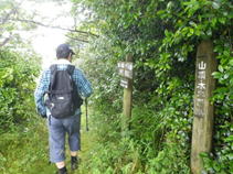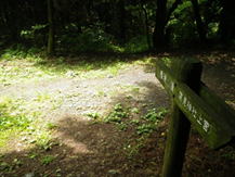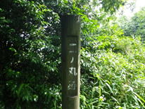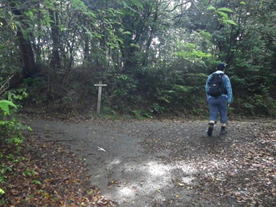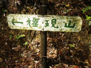 権現の辻 10時40分 権現山周回道路に出るが、そのまま周回道路を渡って権現山を目指す。 古い標識 |