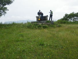 9、皿倉平に到着 11時59分 最後の一座、皿倉山が正面に見える。 フウッー |