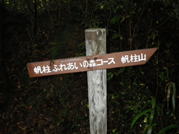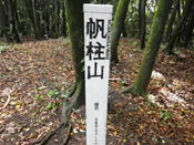 7、帆柱山山頂 10時03分 488m 木立の中の山頂。ベンチに腰を下して休憩。 見晴らしは一方向しか望めずパッとしない。 ![]() |