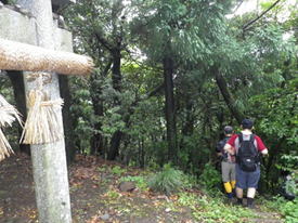 アンテナ塔の裏側へ 11時21分 鷹見神社の奥宮に参拝して先へ進んだ。 安全祈願 |