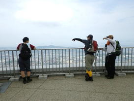 展望台 12時22分 M君の奥さんが下界の街から双眼鏡で見ているので手を振って合(愛)図する。 奥さん確認 |