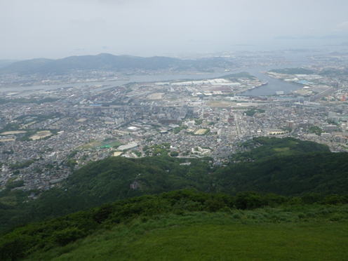 霞む北九州市内を一望する。正面には若松の三座が見える。 M君の奥さんはどこ?(笑)