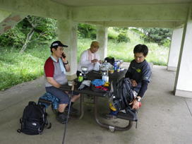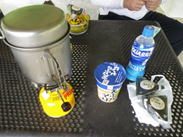 国見岩コースで下山 13時32分 約1時間の昼食タイムで体力回復。 H君はカレーどん兵衛がマイブームらしい。 今度真似してみよう! M君のドリップコーヒー、H君のお菓子の差し入れなどでティータイムも充実。 満腹になったら睡魔が襲ってきた。 残念ながらY君は用事があってケーブルカーで一足先に下山することに・・・。 |