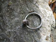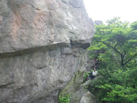 練習しているロッククライマー 13時44分 岩には金具が打ち込まれているが、これをどのように使うのだろうか? 錆びていた |