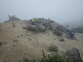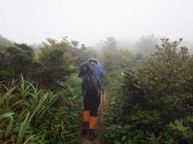山頂は雲の中 8時16分 もうすぐ山頂なのだが、雲に覆われて視界が利かない。残念だが仕方ない。 カキラン |